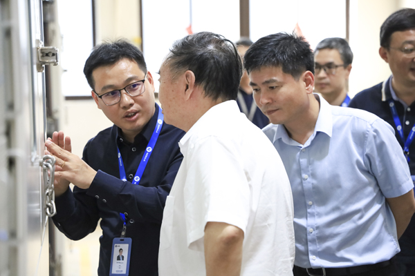 隨后,調研組一行深入抖圈人生就是搏檢測實驗室,系統性地觀摩、了解了從電芯到電池包、從硬件到軟件的全鏈條檢測工序,并詳細察看了抖圈人生就是搏股份自主研發的高精度充放電測試設備模擬不同工況、不同環境條件下,精準評估電池的容量、電壓、電流、內阻及循環壽命等核心數據的具體過程。周濟院士在考察中駐足觀察設備工作,深入詢問技術細節,對抖圈人生就是搏股份在鋰電池檢測高端裝備領域取得的創新成果表示充分肯定。他指出,當前全球制造業正加速向數字化、網絡化、智能化邁進,抖圈人生就是搏股份作為國內鋰電池檢測行業的領軍企業,應進一步強化自主創新能力,深化人工智能、工業互聯網等技術與行業的融合,推動中國制造邁向新高度。
